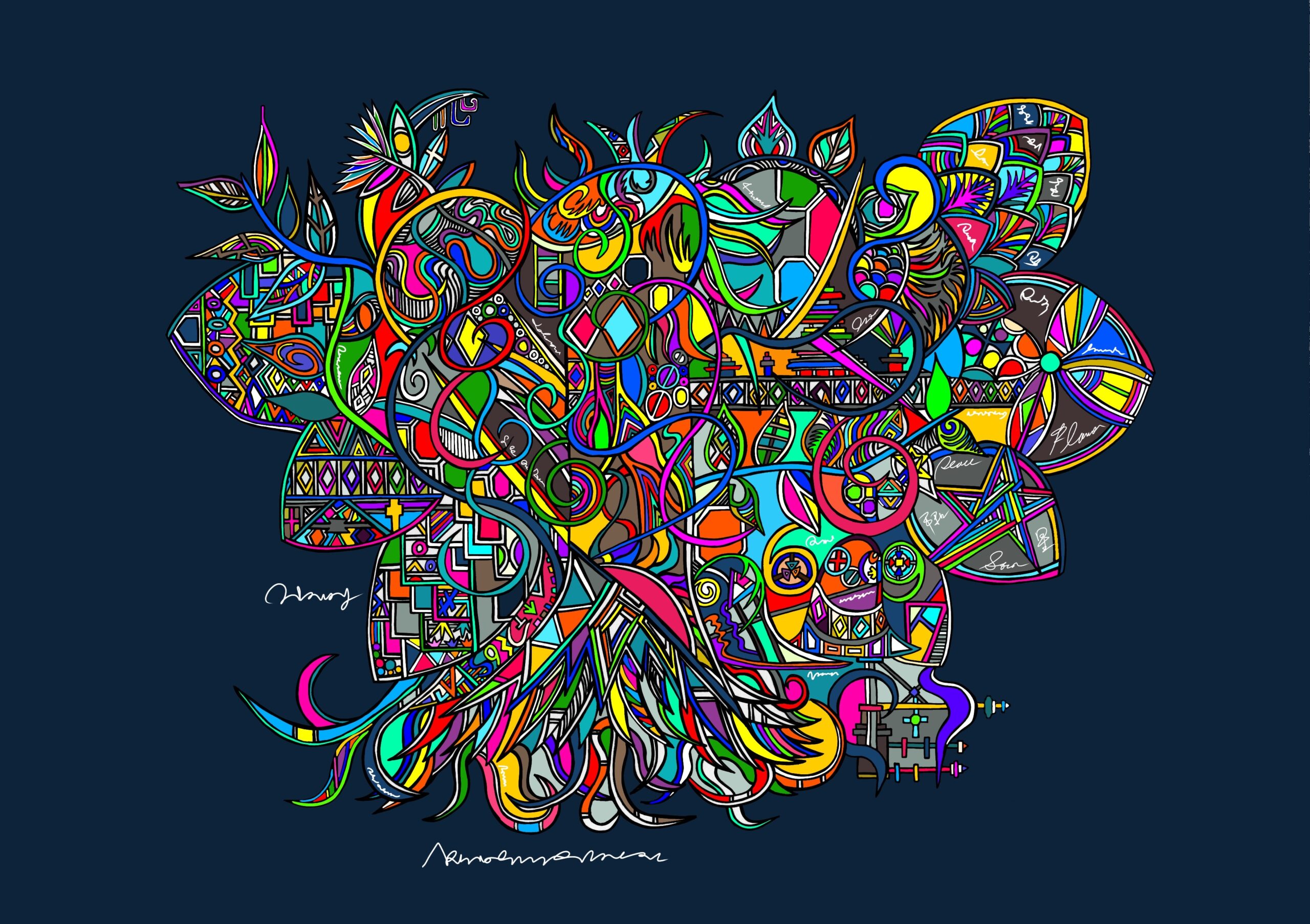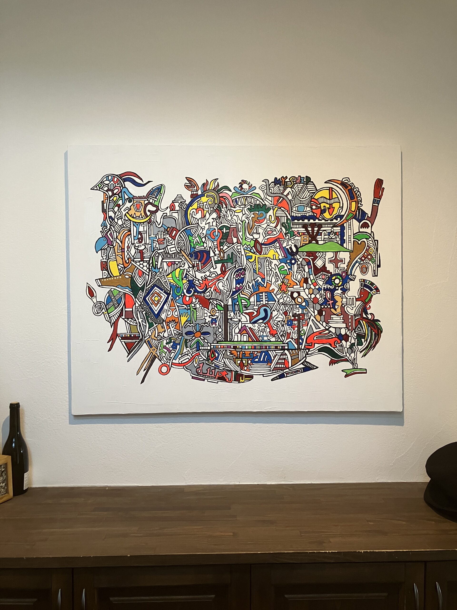 When the paper fills with a certain density and a sense of harmony quietly emerges, the piece finds its end. Looking back, I find glimpses of my cherished everyday life and a small, gentle prayer for peace resting there.