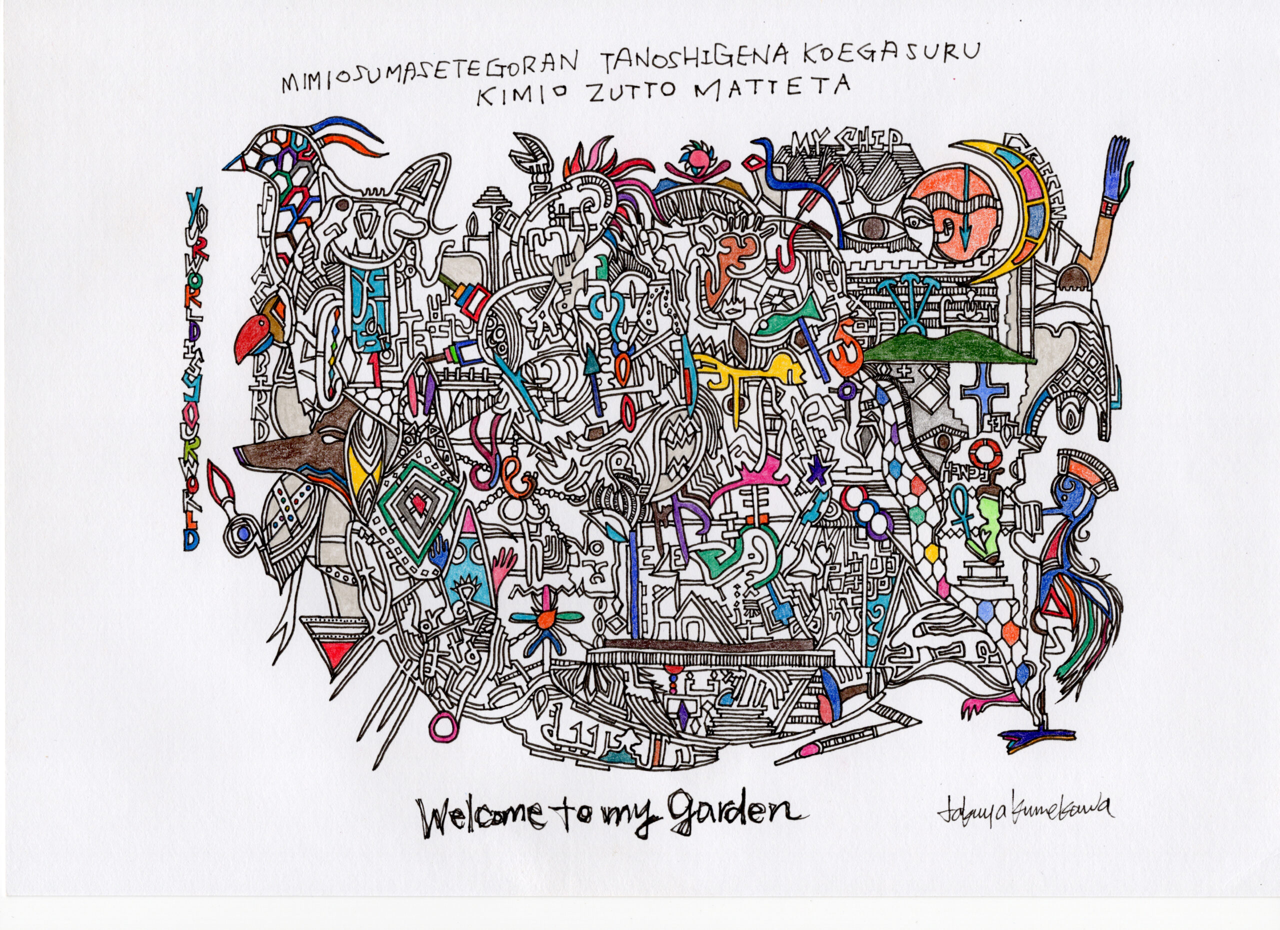 紙の上に線が一定の密度で満ち、調和がふっと立ち上がったところで絵は終わります。振り返ると、愛おしい日常と、平和へのささやかな祈りがそこにあります。